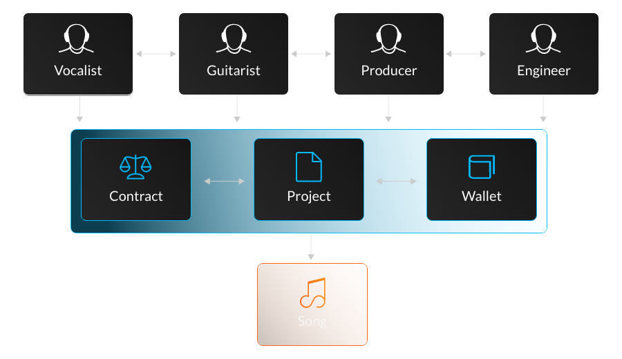 Creators could find collaborators, negotiate terms, and instantly generate industry-standard contracts in a shared workplace that integrated messaging, file sharing, metadata management, royalty split sheets, and version tracking.